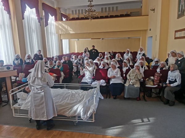 В тот же день состоялся мастер-класс по уходу за тяжелобольными. Занятие провела преподаватель Учебного центра Больницы Святителя Алексия, сестра милосердия Свято-Димитриевского сестричества Екатерина Сиина. Она рассказали, как перемещать тяжелобольного человека, как его позиционировать, как правильно использовать современное оборудование и средства ухода.