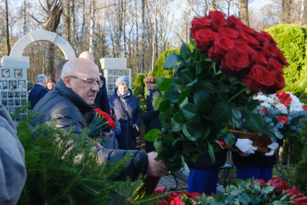 На Серафимовском кладбище у мемориала «Сложенные крылья» на месте захоронения неидентифицированных останков жертв теракта отец Сергий совершил литию. Цветы и венки были возложены от близких и друзей погибших, представителей власти и общественных организаций. Присутствовали вице-губернатор Северной столицы Олег Эргашев, председатель городского комитета по социальной политике Елена Фидрикова.