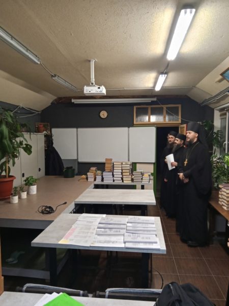 Далее, члены экспертной группы провели проверку готовности к проведению занятия учебного класса монастыря: наличие необходимого библиотечного фонда, технического оснащения класса; наличие полного комплекта документации по курсам. Оценка проверки готовности со стороны руководителя экспертной группы – «очень хорошая». Замечаний выявлено не было.