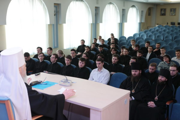 В актовом зале семинарии состоялась встреча митрополита Ювеналия с преподавателями и студентами, в ходе которой архиерей рассказал о жизни Московской епархии и ответил на вопросы учащихся.