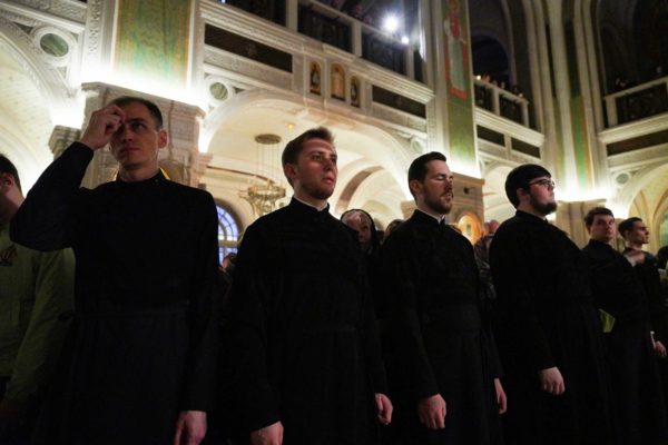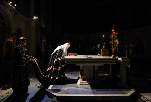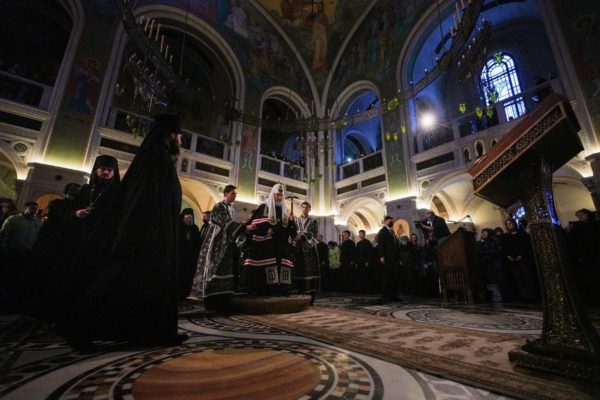 В среду первой седмицы Великого поста Святейший Патриарх Кирилл совершил повечерие с чтением Великого канона прп. Андрея Критского в Сретенском ставропигиальном монастыре