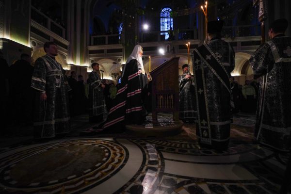 Вечером 1 марта 2023 года, в среду первой седмицы Великого поста, Святейший Патриарх Московский и всея Руси Кирилл совершил великое повечерие с чтением Великого покаянного канона преподобного Андрея Критского в храме Воскресения Христова и Новомучеников и исповедников Церкви Русской Сретенского ставропигиального мужского монастыря г. Москвы.
