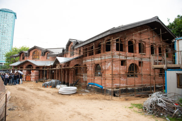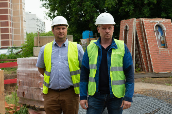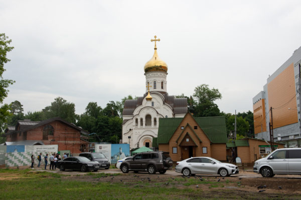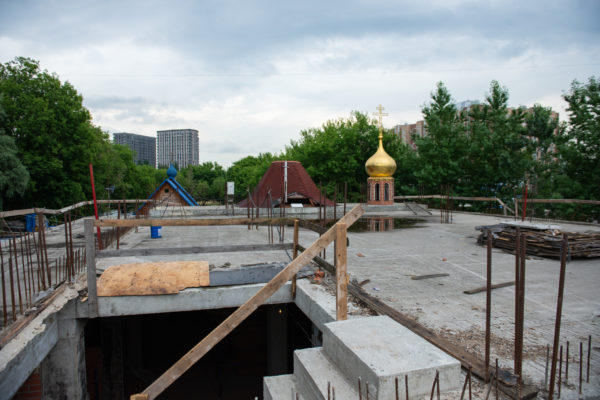 Из района Мневники кураторы московской программы направились в Щукино, где в старорусском стиле возводится церковный комплекс с храмом святителя Николая Мирликийского на улице Авиационная, вл. 30.