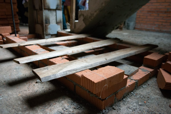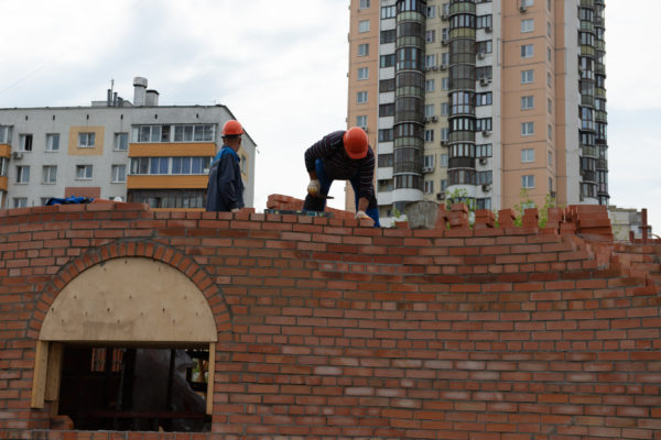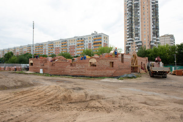 Завершился объезд на приходе строящегося храма бессребреников Космы и Дамиана в Северном Тушине, на ул. Вилиса Лациса, вл. 2/1, вл. 2/2. Сегодня здесь ведется кирпичная кладка стен основного объема церковного строения.