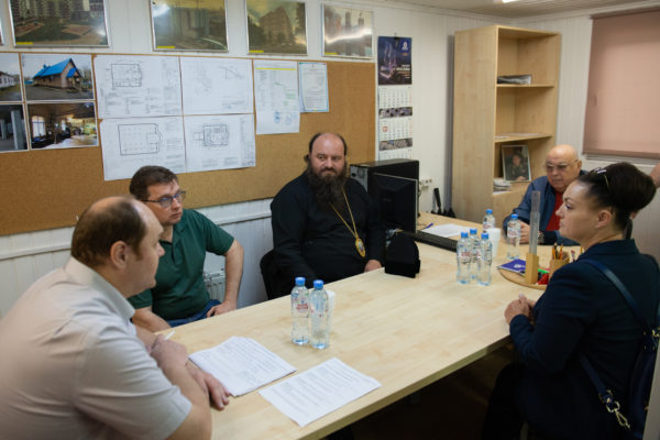 Епископ Парамон в ходе совещания на объекте благословил настоятеля храма приступить к созданию проекта будущего иконостаса.