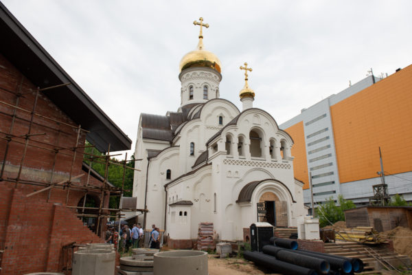 Следующим пунктом объезда стал храм равноапостольных Константина и Елены на улице Митинская, 11. Объект введен в эксплуатацию. И в настоящее время церковь готовится к чину великого освящения.