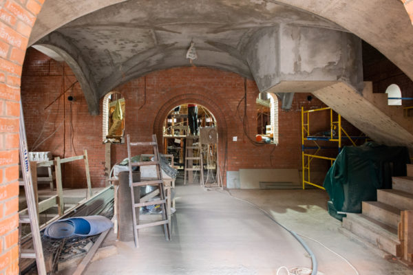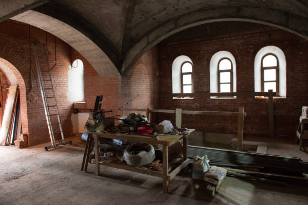 Стены храма возведены, купола и кресты установлены, ведутся работы по внутренней отделке: в нижнем приделе все стены и своды оштукатурены, штукатурят стены и своды основного зала. Также завершилась прокладка сетей (слаботочка и электрика), подходят к концу работы по торкретированию сводов. Приступили к монтажу систем отопления и вентиляции.