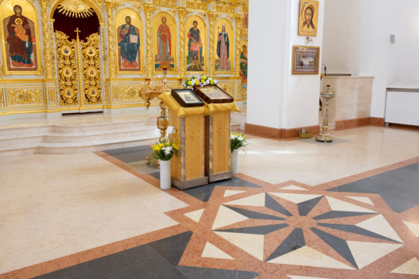 Дописываются иконы в центральный иконостас, создаются иконостасы для боковых приделов. Все эти работы должны быть выполнены до конца года.