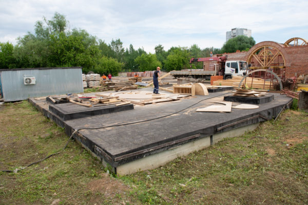 Также ведутся работы по устройству фундаментной плиты для большой парадной западной лестницы и входной группы храма. При этом сначала здесь установят башенный кран.