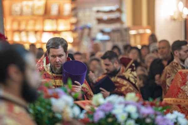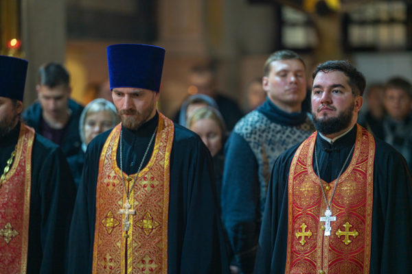 Богослужебные песнопения исполнил смешанный хор собора под управлением Геннадия Лапаева. Проповедь произнес настоятель храма Казанской иконы Божией Матери во Власьеве г. Твери протоиерей Димитрий Курдюков.