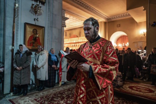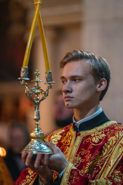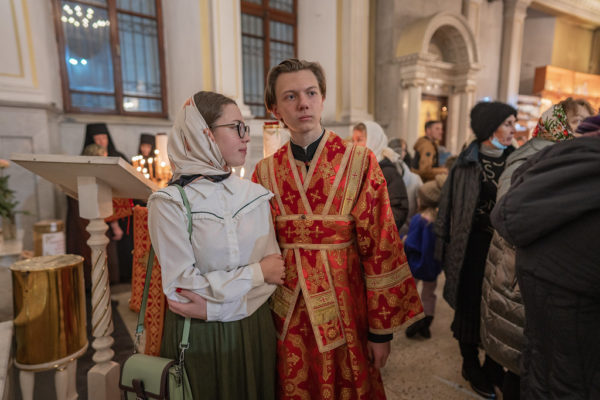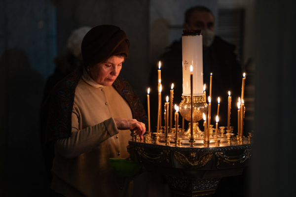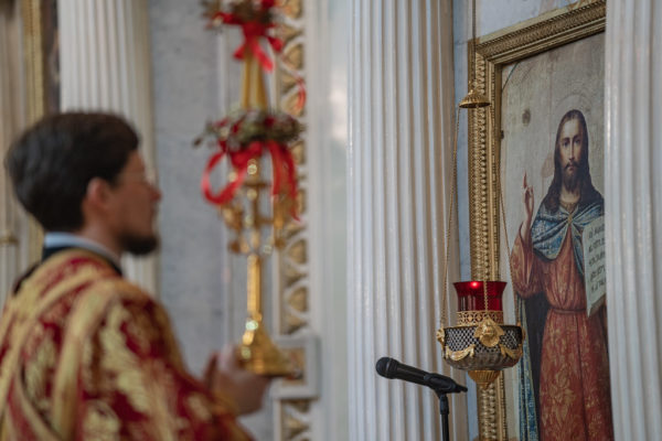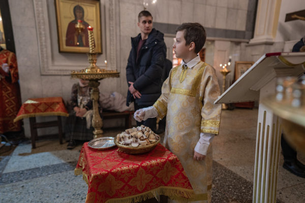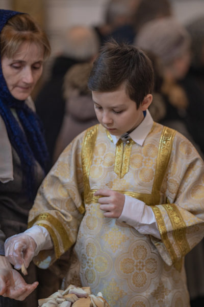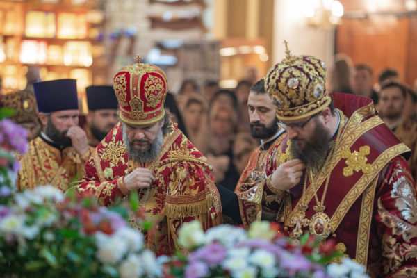 За Литургией возносились молитвы о восстановлении мира и об Отечестве.