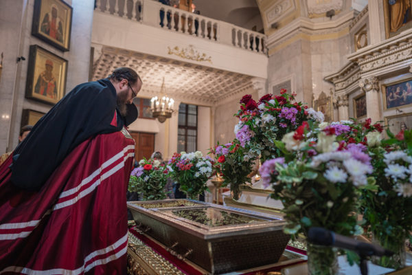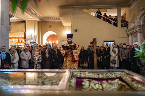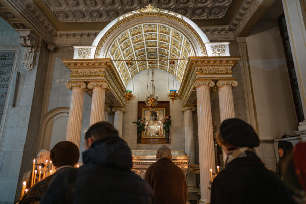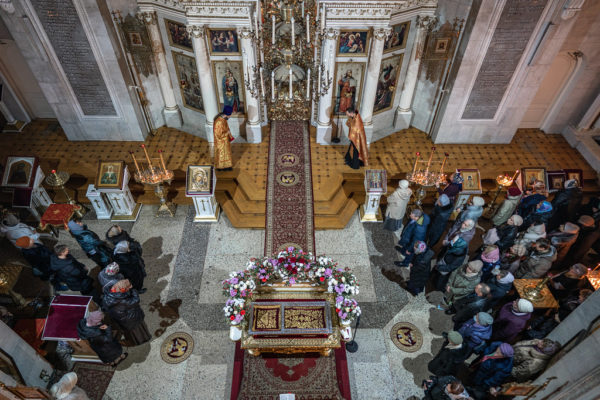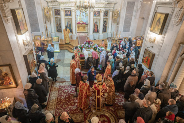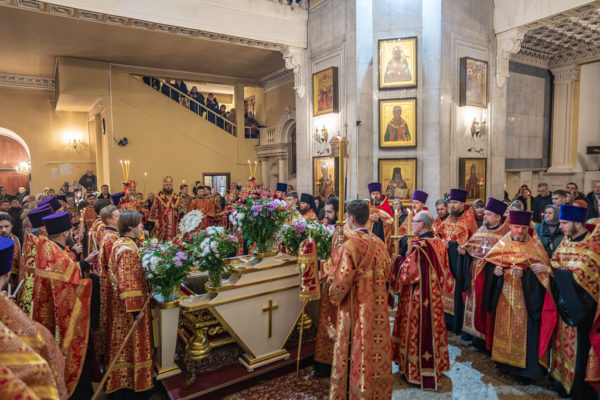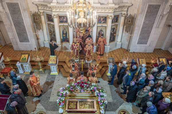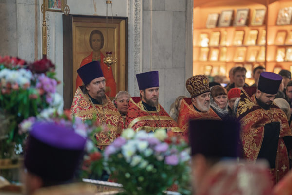 Епископ Константин возглавил литию. Полиелей на утрене совершался в центре храма, у раки с мощами святого.