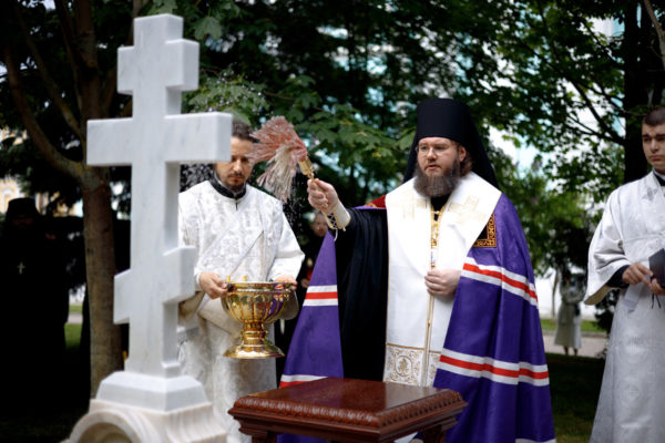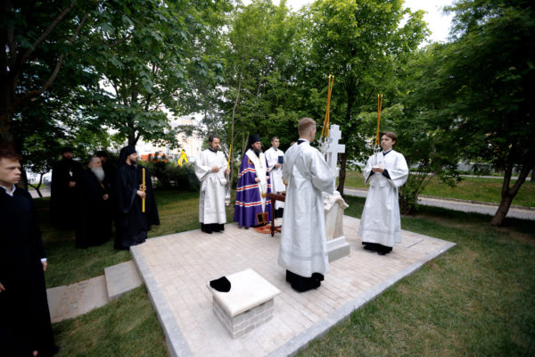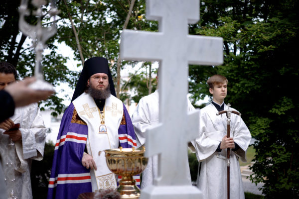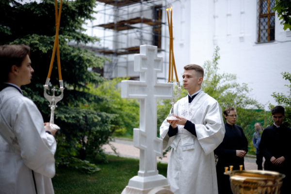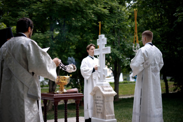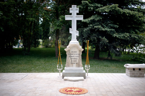 Территорию вокруг костницы благоустроили и установили поклонный крест, который изготовили в белокаменной мастерской Лавры.