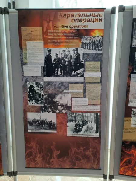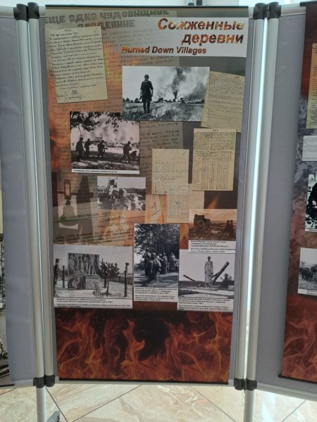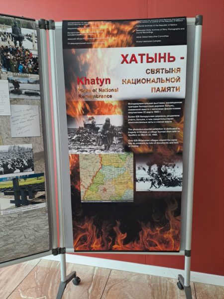 На выставке представлены фотографии и документы, подтверждающие преступления фашистского режима, а также фотодоказательства с судебных процессов над гитлеровскими преступниками. В ходе мероприятия был продемонстрирован видеоролик «Мемориальный комплекс «Хатынь». Материалы для выставки предоставило посольство Республики Беларусь, выступившее соорганизатором данного памятного мероприятия.