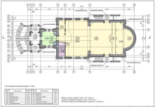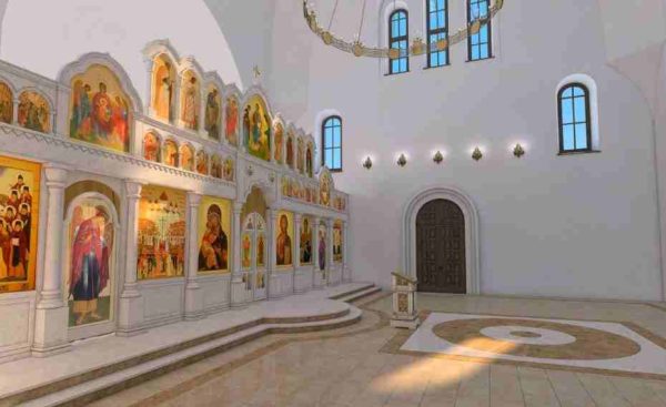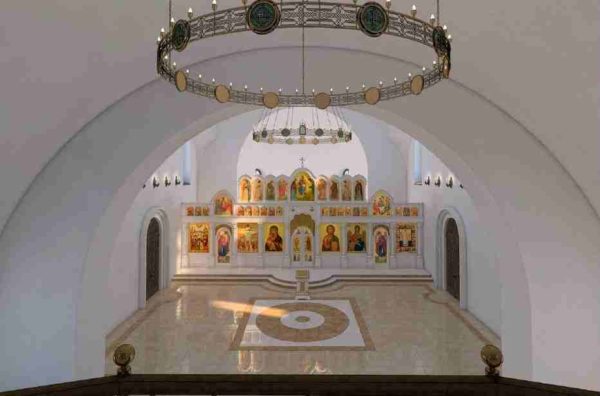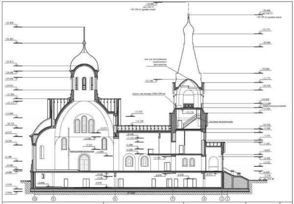 В цокольном этаже запроектированы крестильный храм, церковно-приходские, подсобные и технические помещения. В западной части молельного зала размещается балкон хора. Подъем на хоры осуществляется по лестнице, расположенной в отдельной лестничной клетке. Выше площадки хора, также в отдельном помещении, находится лестница, ведущая на ярус звона.
