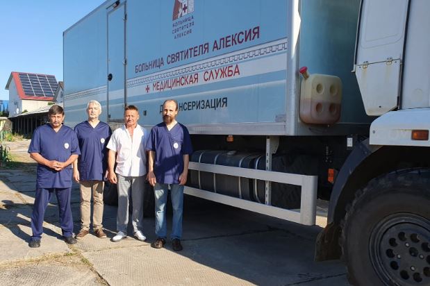 24 июня 2023 года в Херсонской области начал работу передвижной медицинский комплекс церковной Больницы святителя Алексия. В мобильном госпитале проходят медицинский осмотр жители затопленных районов, многие из которых эвакуированы в пункты временного размещения.