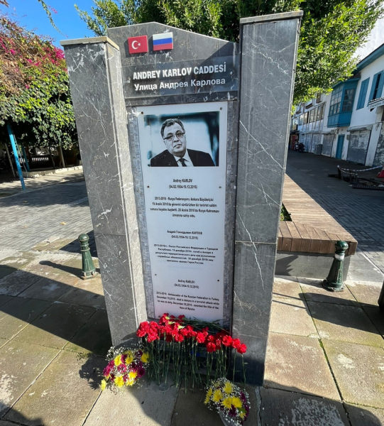 Верующие возложили цветы к памятнику Герою Российской Федерации А.Г. Карлову на главной улице Демре, носящей имя покойного дипломата.