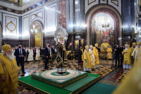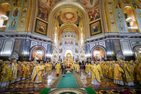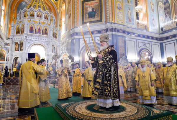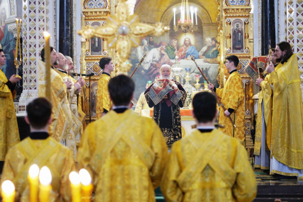 В четырнадцатую годовщину интронизации Святейшего Патриарха Кирилла в Храме Христа Спасителя совершена Божественная литургия