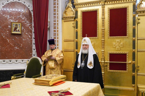 В сугубую ектению были включены особые прошения о ныне чествуемом Святейшем Патриархе Кирилле и Церкви Русской, им ведомой.