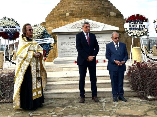 22 ноября в рамках памятных мероприятий по случаю 103-й годовщины исхода из Крыма воинов русской армии генерала П.Н. Врангеля священник Георгий Сергеев, ответственный за окормление верующих Московского Патриархата в Турции, совершил панихиду у мемориала русским воинам в Галлиполи (совр. Гелиболу).