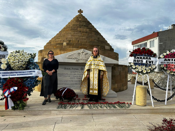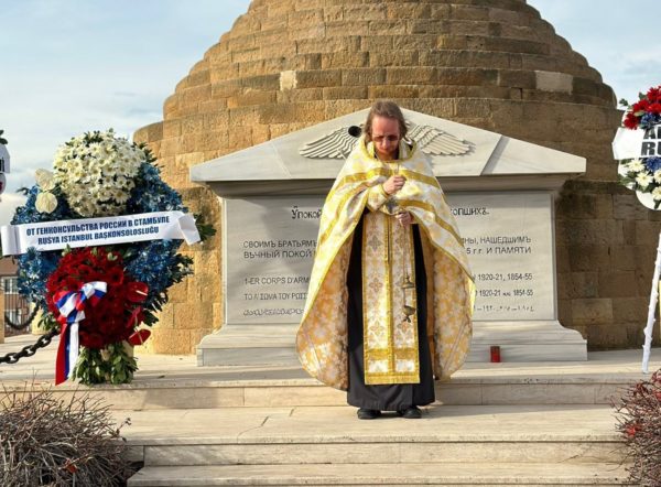 22 ноября в рамках памятных мероприятий по случаю 103-й годовщины исхода из Крыма воинов русской армии генерала П.Н. Врангеля священник Георгий Сергеев, ответственный за окормление верующих Московского Патриархата в Турции, совершил панихиду у мемориала русским воинам в Галлиполи (совр. Гелиболу).