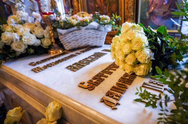 На гробницу были возложены цветы от Святейшего Патриарха Кирилла. Митрополит Григорий, митрополит Арсений, архиепископ Фома также возложили на могилу букеты белых роз.