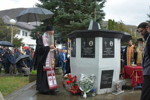 „То свједочи и ово свето мјесто гдје је извршен један од најновијих злочина над Црквом и дјецом Божијом. Овдје су пострадали Мирослав, Јулијана и Оливера, Манојло и Милка од савремених натопактовских нацифашиста. “