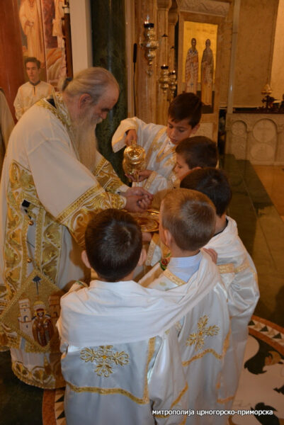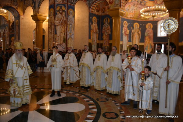 Свету архијерејску Литругију са свештенством служио је Високопреосвећени Архиепископ цетињски и Митрополит црногорско-приморски г. Амфилохије. Владика је, после читања јеванђељског зачала, казао: