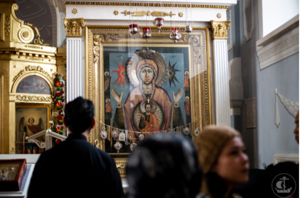 После этого делегацию из Индонезии проводили в академический храм апостола и евангелиста Иоанна Богослова. Здесь гости помолились перед главной святыней Академии — иконой Божией Матери «Знамение» Царскосельская.