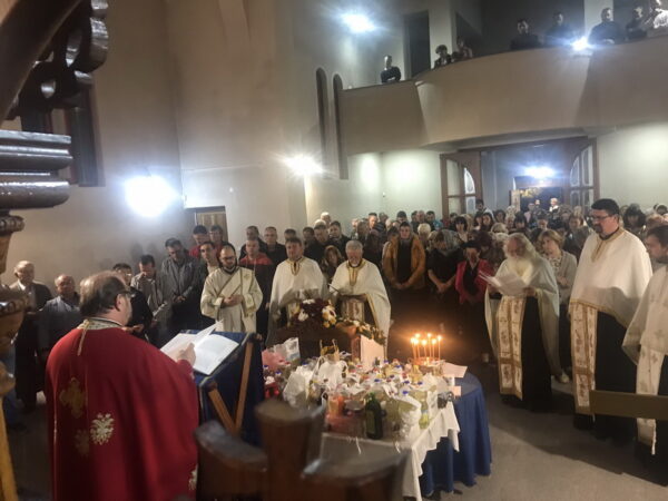 У недељу Светих Отаца Седмог Васељенског Сабора и на дан Свете Петке, 27. октобра 2019. године у 9 часова, у Новој Пазови свету Литургију су служили архијерејски намесник старопазовачки протојереј-ставрофор Миле Јокић, протојереј-ставрофор Лука Јовић, протојереји Радомир Сандић и Јевто Павловић, протонамесник Марко Симић, јереји Александар Маџаревић и Саво Мишановић, ђакон Светогор Сандић, а појао је хор „Свети владика Николај Српски.“