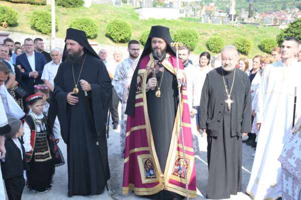 После читања светог Јеванђеља, са благословом епископа Сергија, беседу је произнео игуман хиландарски Методије. На крају свете Литургије, епископ Сергије је упутио речи благодарности епископу Дамаскину и игумани Методију на указаној љубави и доласку у Мркоњић Град.