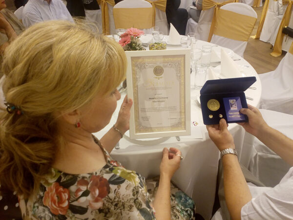 На почетку свечаности у Мраморној сали Руског дома, патријарх Иринеј је гђи Кушченковој уручио високо одликовање Српске Православне Цркве – орден царице Милице – Преподобне Евгеније, а потом је уручио орден Преподобних Петра и Февроније брачним паровима који више од четврт века живе у заједници .