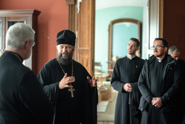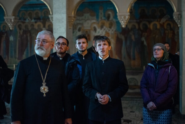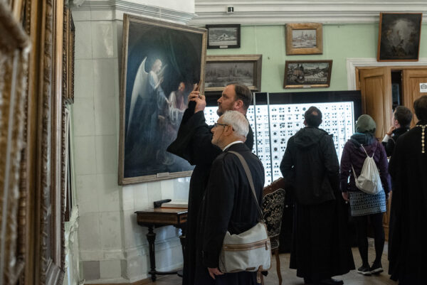 Затем делегация отправилась в Покровский храм. Студент бакалавриата Сергей Тризна рассказал об истории Покровского храма и провел экскурсию по музею Академии.
