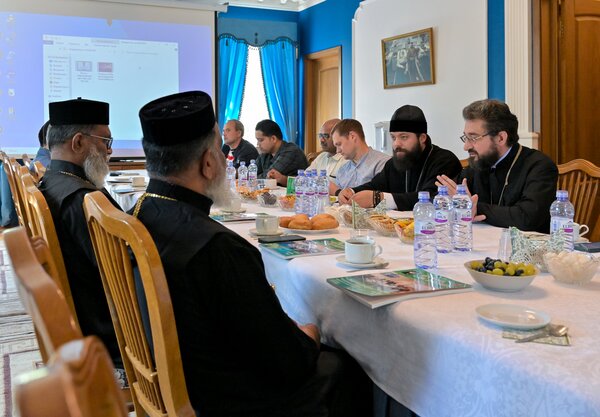 В Синодальном отделе по благотворительности делегация Маланкарской Церкви встретилась с сотрудниками Отдела – ответственным секретарем игуменом Серафимом (Кравченко), руководителем сектора координации социальных программ Ксенией Гераськиной, руководителем церковного штаба помощи беженцам в Москве Натальей Еремичевой, руководителем центра гуманитарной помощи Еленой Холодовой, помощником руководителя службы помощи бездомным Татьяной Залесской. Гостям рассказали об основных направлениях деятельности Отдела.