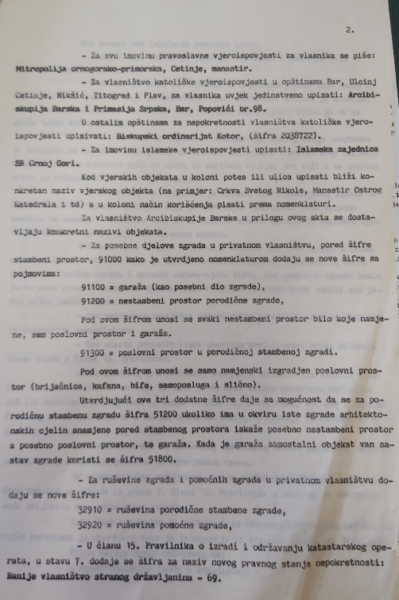 У том документу се наводи, како је нагласио, да за сву имовину православне вјероисповијести за власника пише МЦП, а да за власништво католичке вјероисповијести у општинама Бар, Улцињ, Цетиње, Никшић Титоград и Плав треба увијек јединствено уписати Арцибискупија барска и Примасија српска.