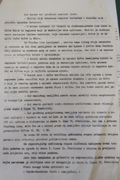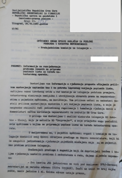 „Двадесетог октобра 1987. године тадашњи републички Секретаријат за финансије и републичка Управа за геодетске имовинско правне послове, који су претече данашњег Министарства финансија и Управе за некретнине, издали су акт који је упутство за примјену закона из 1984. године“, казао је Шоћ.