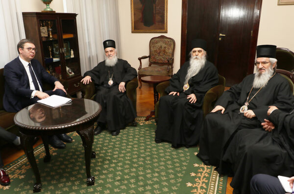 Председник Вучић је упознао Његову Светост Патријарха и чланове Светог Синода са садржајем платформе коју су усвојили косовско-метохијски Албанци, са опасним последицама тог чина, како по наставак преговора Београда и Приштине тако, и још више, по српски народ на Косову и Метохији, и са тренутном тешком ситуацијом у јужној српској покрајини. Председник Вучић је захвалио Патријарху и архијерејима што са својом државом деле забринутост и одговорност.