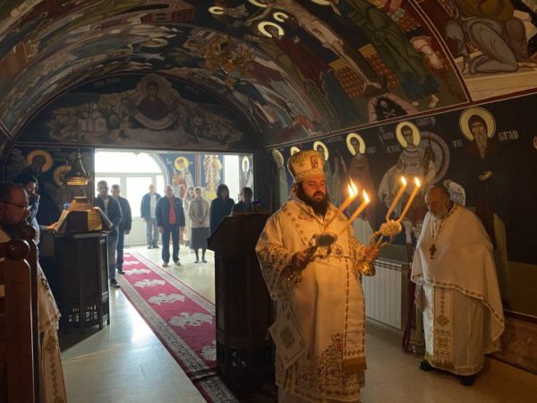 – У име Оца и Сина и Светога Духа! Часни оци и драги народе, нек је благословен дан у који нас је Бог сабрао под сводовима овога светога храма, да прославимо, славимо и величамо име Његово, да бисмо примили благодатне Дарове за живот вечни, кроз Тело и Крв Господњу. Кад год смо сабрани једни са другима, и кад живимо у литургијској заједници, ми имамо пуноћу и благодат живота, осећамо пуноћу и благодат заједнице, осећамо благодат присуства Божијега. Јер је то теологија и философија живота! Теологија и философија свега онога што је Бог оставио човеку, што смо кроз молитве у Светој Литургији и данас чули: ”Ово чините у мој спомен, јер кад год једете Тело и Крв моју, смрт моју објављујете и Васкрсење моје исповедате“. То су тајне живота. То су тајне подвига и живота у Христу. Неможемо живети у Христу, ако немамо то сведочанство и не испуњавамо тај спомен – као што смо то чули у литургијским песмама и химнама.