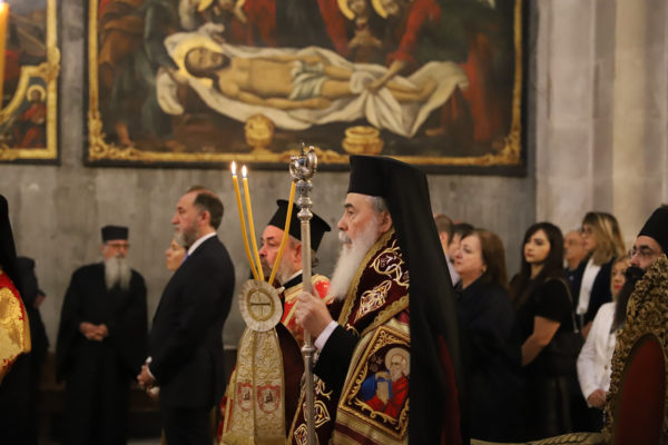 Богослужение возглавил Блаженнейший Патриарх Иерусалимский Феофил вместе с епископами и священниками Патриархата в присутствии генерального консула Греции в Иерусалиме Димитриоса Ангелосопулоса, членов Церкви Иерусалима и греческой православной арабоязычной паствы.