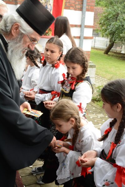 Свету архијерејску Литургију су својим молитвеним присуством украсила деца из локалне школе која похађају веронауку, а причестили су се и сви присутни свештеници.
