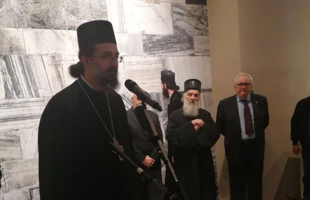 На почетку изложбе обратио нам се председник Српске академије наука и уметности, господин Владимир Костић поздравивши Његову Светост Патријарха српског Иринеја као и монаштво манастира Хиландара и манастира Студенице.