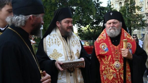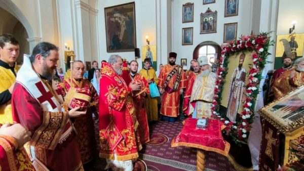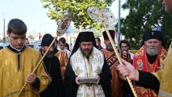 Пре Литургије, по благослову Патријарха Порфирија, Епископ Досије је уручио део моштију Светог мученика и исповедника Доситеја, нишког и митрополита загребачког, које ће почивати овде у Прагу. Уследила је литија са светим моштима са Јирасковог трга до саборног храма Светог Кирила и Методија.