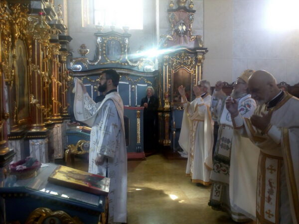 Певницом је руководио професор Карловачке богословије г. Јован Стојановић, док је песме хвале и славе Господу са вернима узнео хор Покрова Пресвете Богородице који већ трећу деценију учествује на свим богослужењима у цурчинкој цркви. Током свете Литургије владика Василије је произвео у чин протопрезвитера оца Страхињу Голијана. Празничном сабрању присуствовали су предсдник Градске општине Сурчин са сарадницима, гости културног и јавног живота престоног Београда.