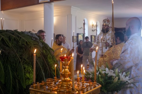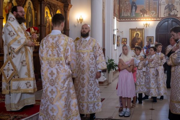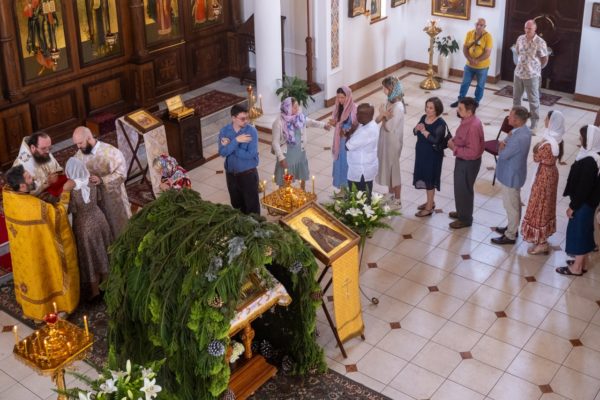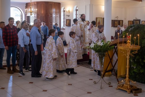 Перед началом богослужения настоятель храма протоиерей Даниил Луговой, встречая иерарха у врат храма, приветствовал его от лица прихода, отметив, что это первое посещение кафедрального храма новоучрежденной Южно-Африканской епархии управляющим ею архиереем. Епископ Константин поздравил отца Даниила и прихожан с недавним празднованием 20-летия образования прихода и передал благословение и дар Святейшего Патриарха Московского и всея Руси Кирилла – икону преподобного Сергия Радонежского, которая была возложена на аналой.