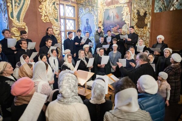 За богослужением пели смешанный хор лавры под управлением архимандрита Глеба (Кожевникова) и братский хор монастыря под управлением Сергия Сухарева.
