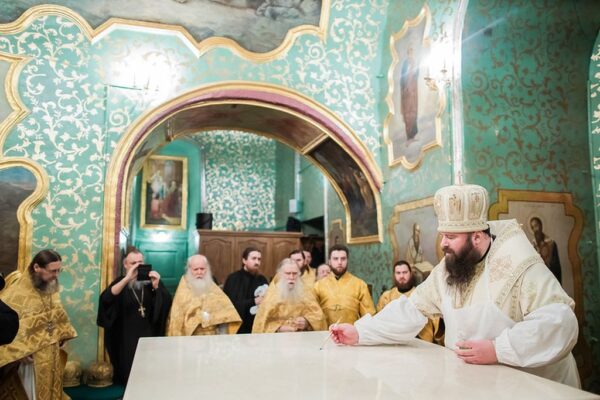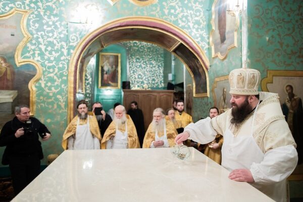 22 декабря 2019 года, в Неделю 27-ю по Пятидесятнице, праздник Зачатия праведной Анною Пресвятой Богородицы, наместник Троице-Сергиевой лавры епископ Сергиево-Посадский Парамон совершил чин освящения нового каменного престола в Сергиевском храме обители в сослужении монастырской братии в священном сане.