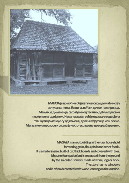 Домаћинство ће сачињавати 2 куће које су служиле за становање, те 5 помоћних објеката: магаза, магаза са чардаком, амбар, мљечар и штала са шупом, као и позорница која ће у склопу домаћинства служити за културне манифестације, а у централном дијелу ће бити бунар са живом водом и ђермом.