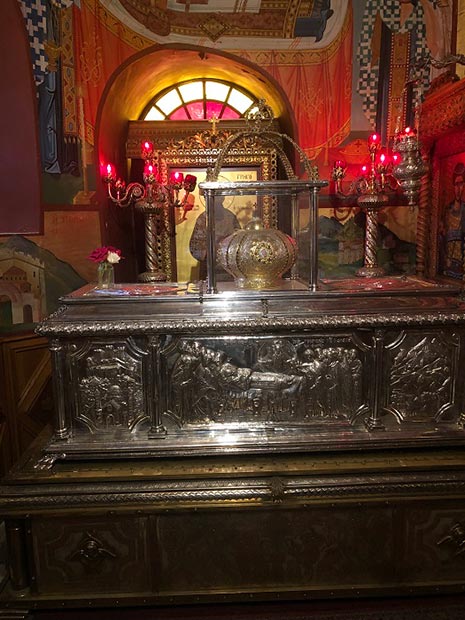 Далее паломники побывали в мужском монастыре во имя великомученицы Анастасии Узорешительницы, где поклонились части ее святых мощей, а также мощам святителя Фионы и преподобномучеников, подвизавшихся в обители и пострадавших при разорении монастыря завоевателями.