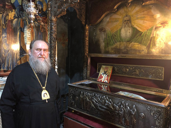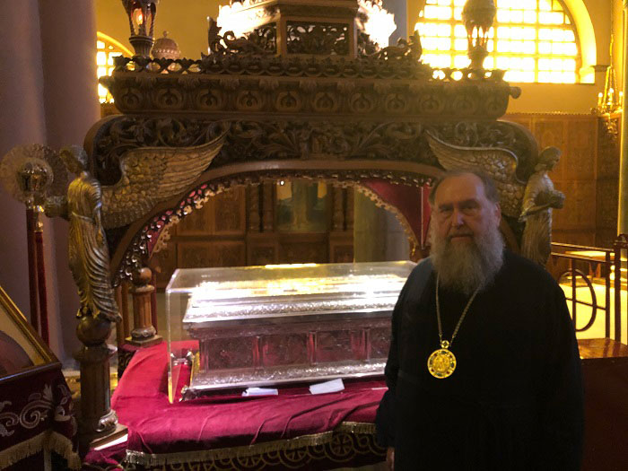 В заключительный день поездки архипастырь и сопровождающие его священнослужители и миряне совершили молитву у мощей великомученика Димитрия Солунского, Мироточивого в городе Фессалоники. В базилике великомученика Димитрия также пребывает рака с мощами мученицы Анисии Солунской.