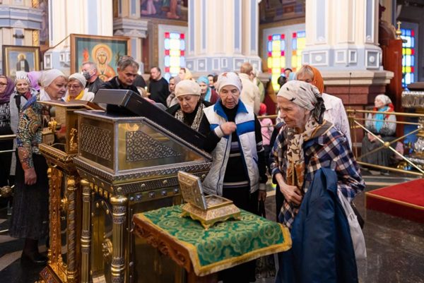 По завершении прощального молебна в Вознесенском кафедральном соборе Южной столицы верующие простились с мощами преподобного Сергия Радонежского, отбывающими к месту их постоянного пребывания – в Троице-Сергиеву Лавру.